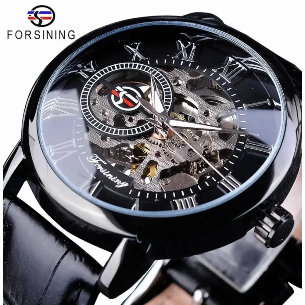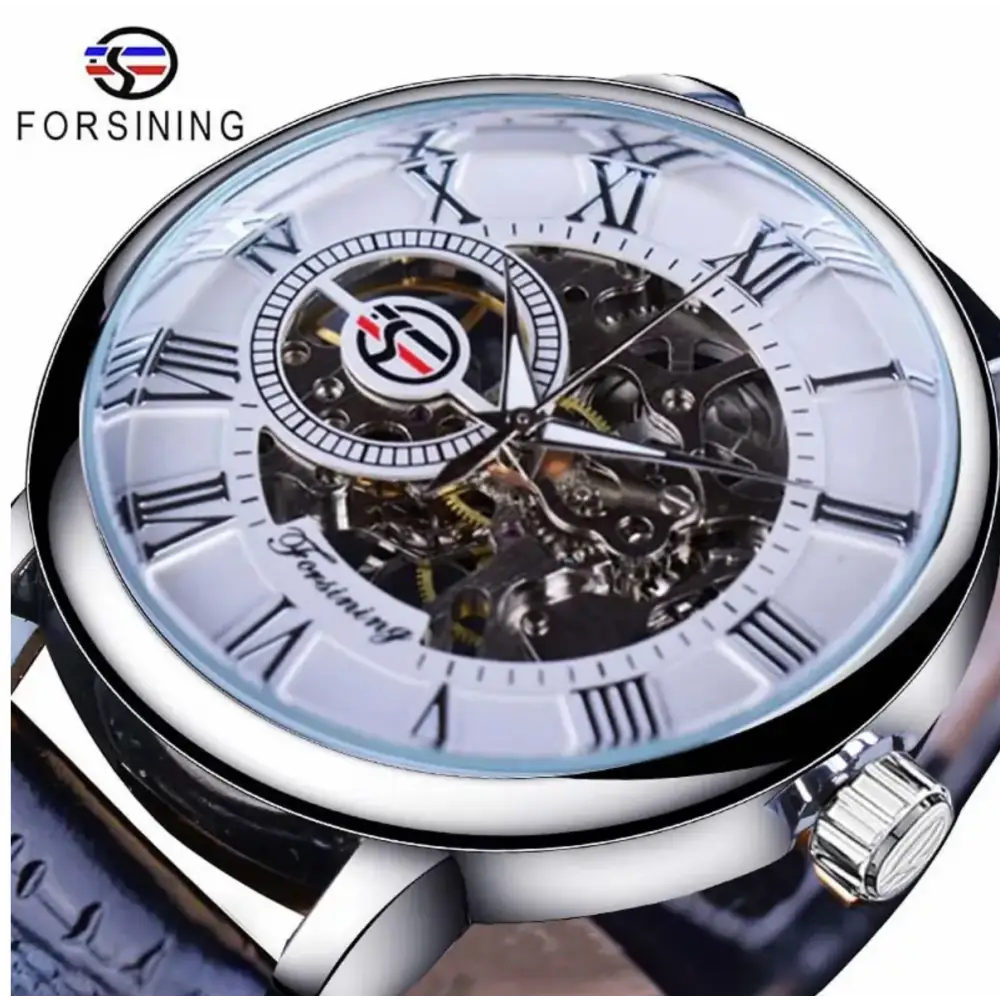 Brand Luxury Men Skeleton Dial Leather Watch Premium
